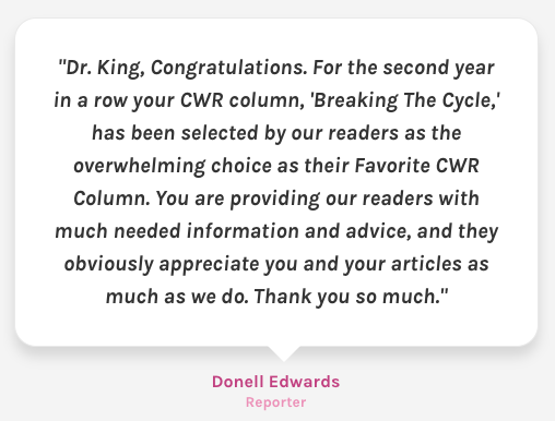 The first book she wrote on the subject, All But My Soul: Abuse Beyond Control became a college textbook in criminal justice. Since this time, she has published 12 eBooks and 544 articles on identifying, ending and healing from physical, narcissistic, emotional and verbal abuse.